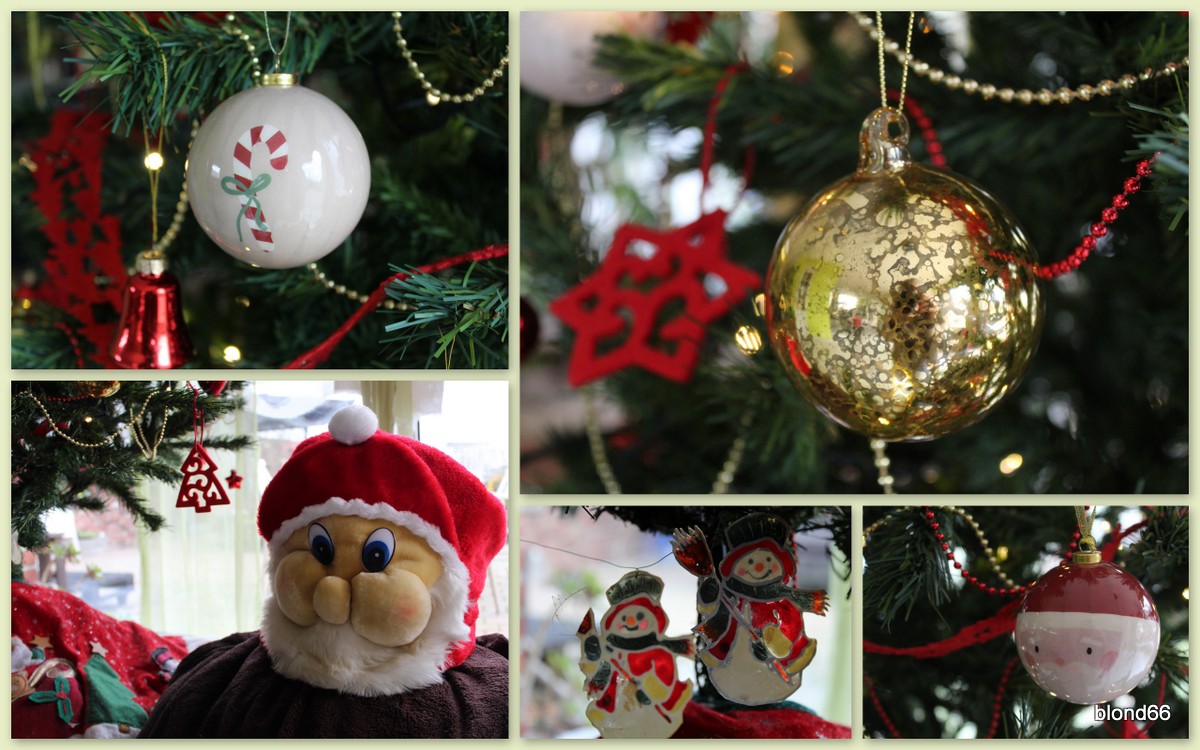 La décoration est la même depuis des années. Cette année, j’ai craqué pour quelques nouvelles boules en papier vernis pour accompagner mes boules dorées.