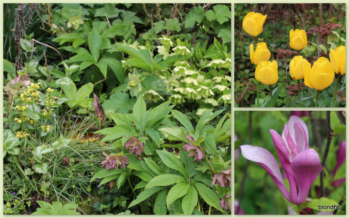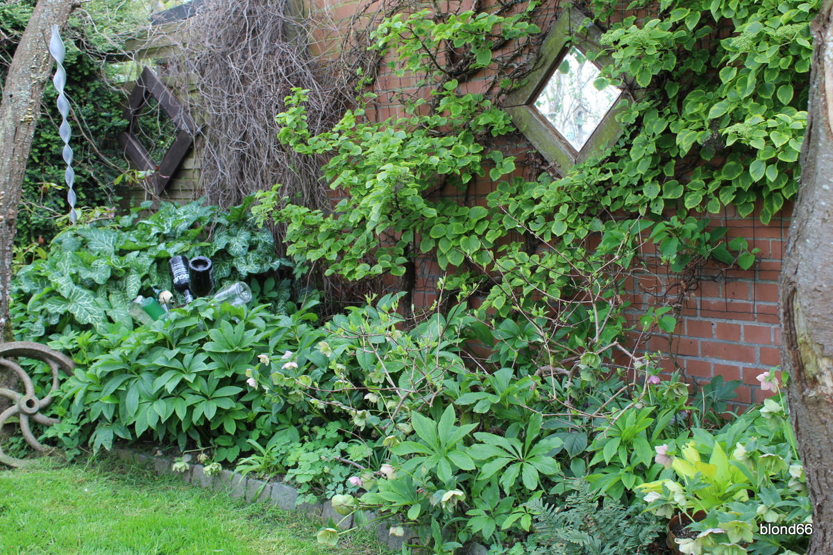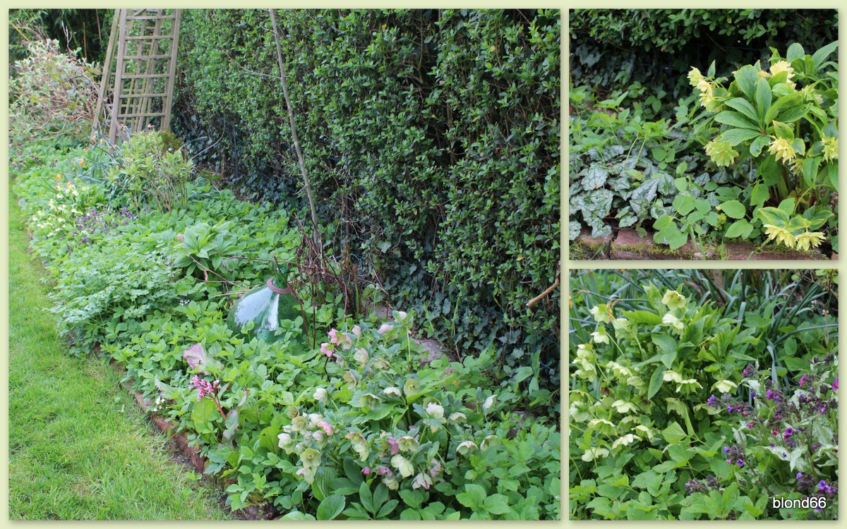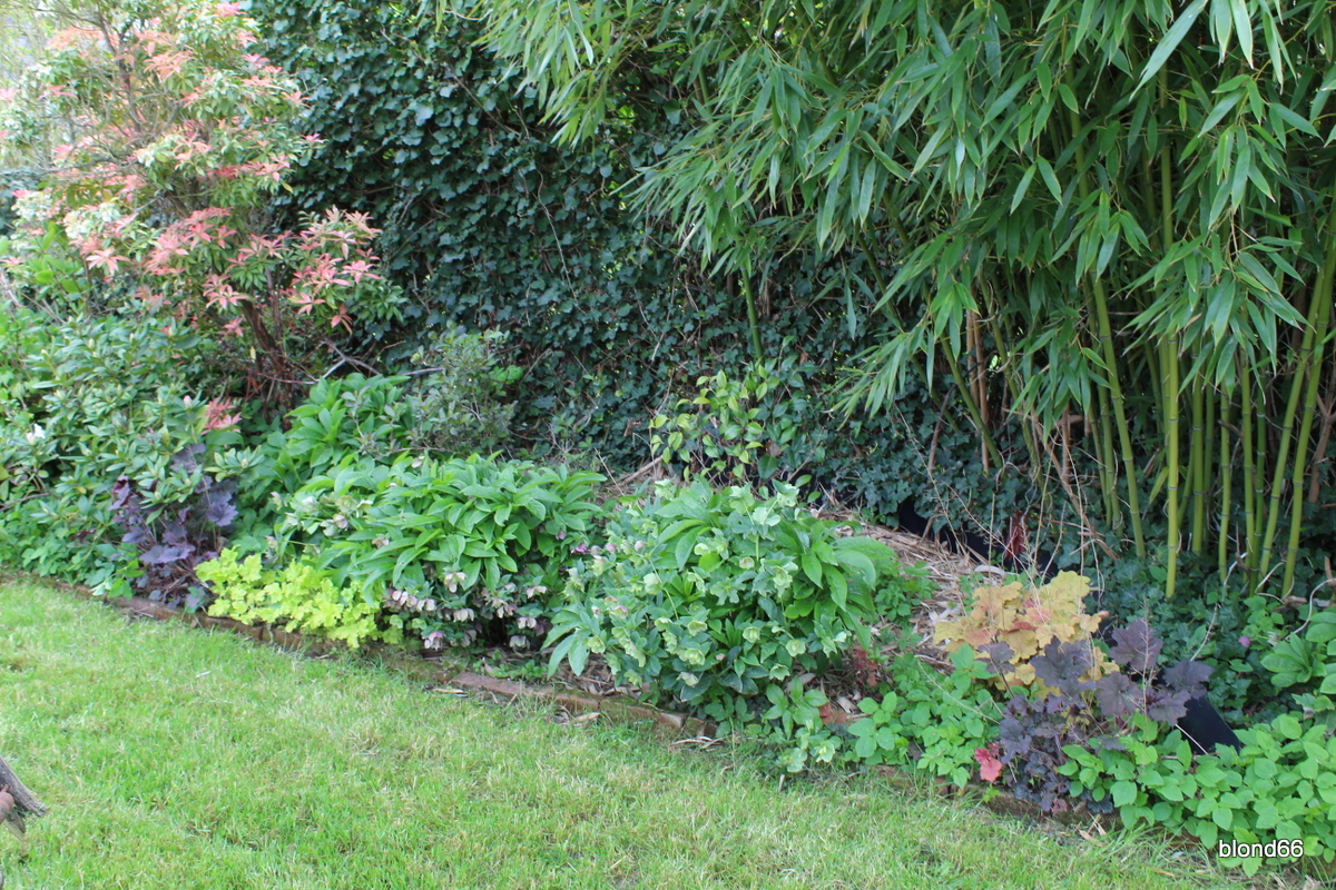 Le bout de la Haie se colore avec les hellebores et les heuchères.
