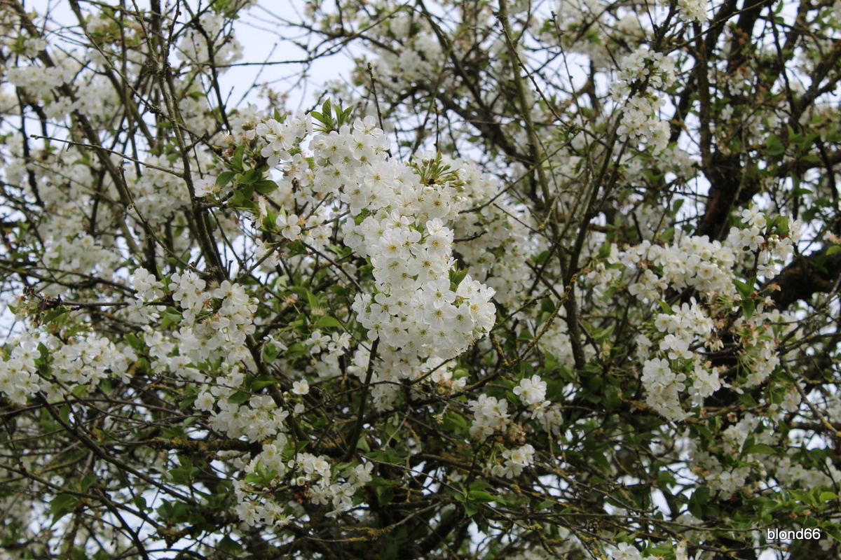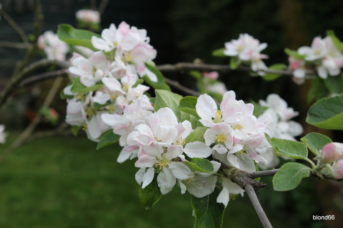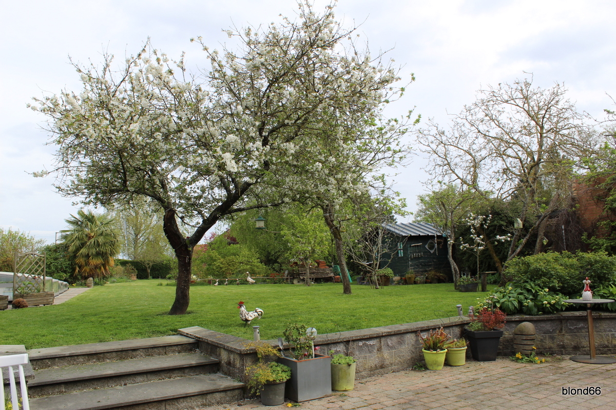 Et au milieu, le pommier en fleur apporte une touche de blanc rosé.
