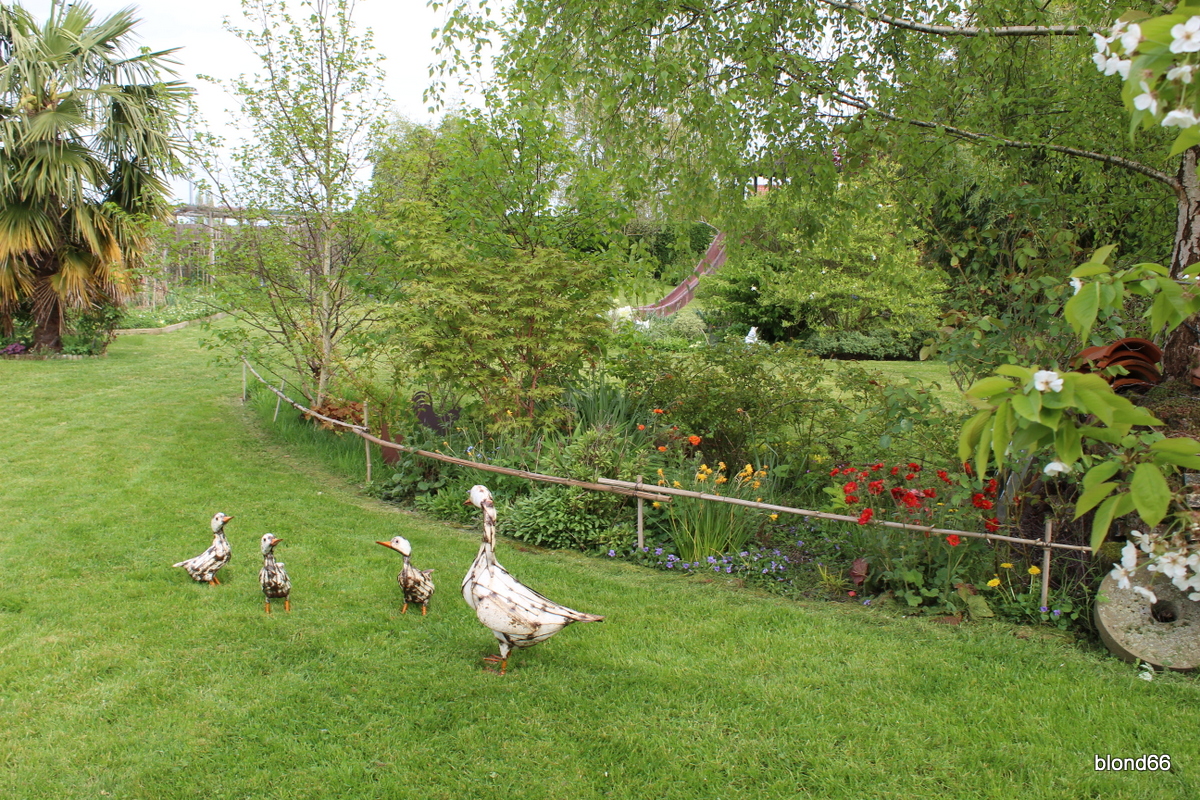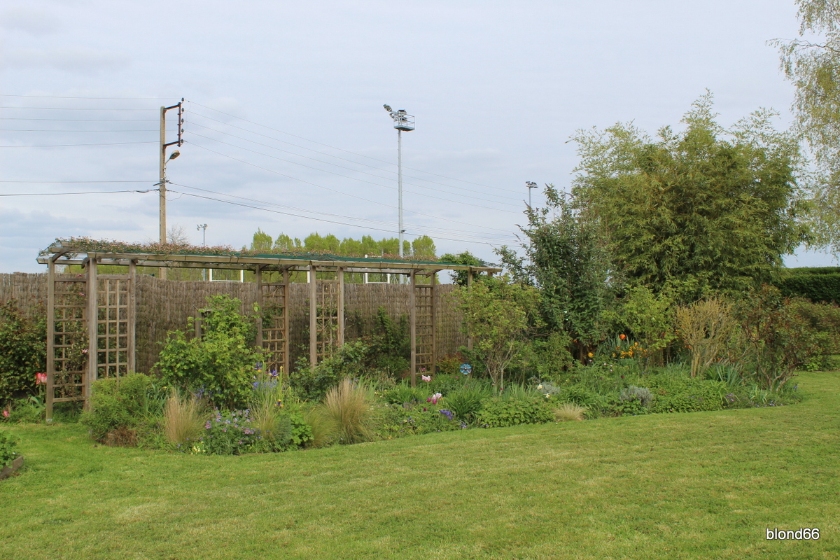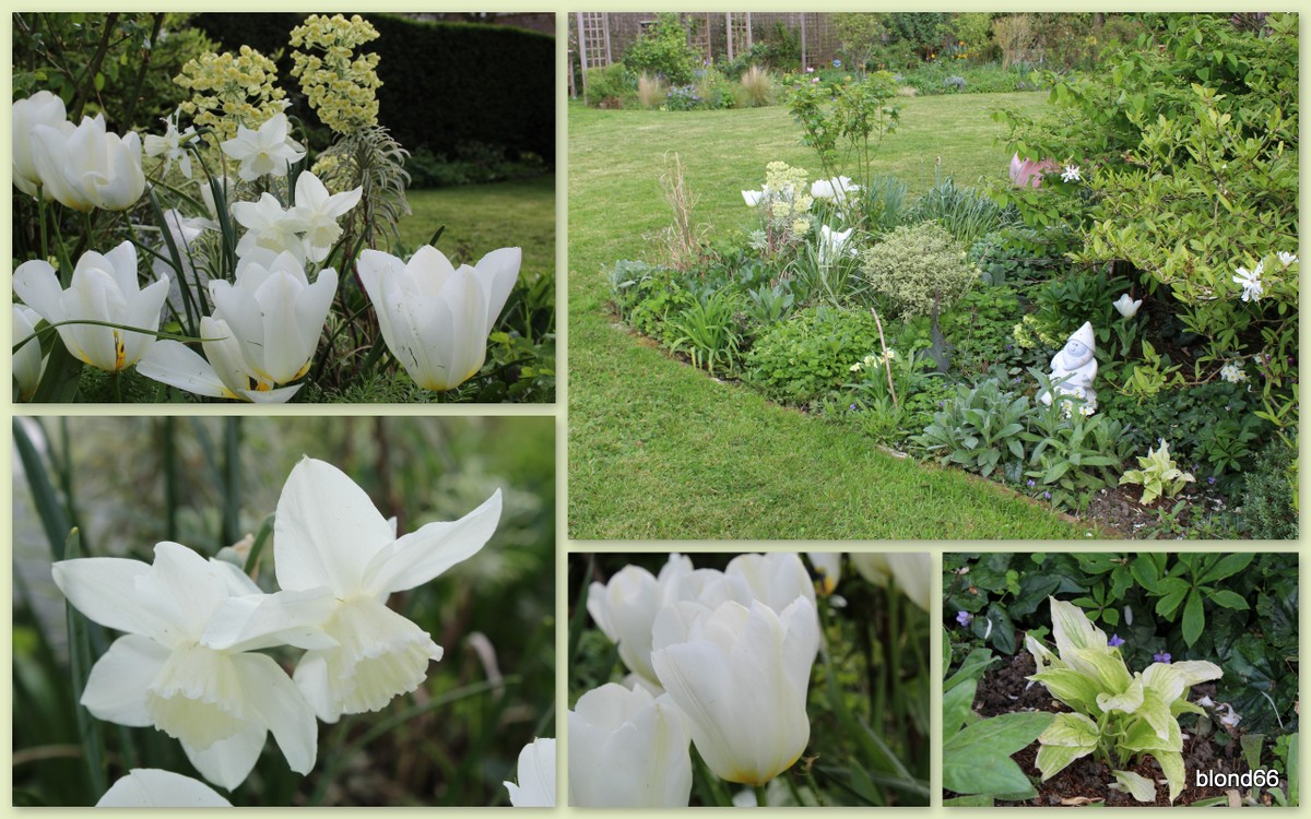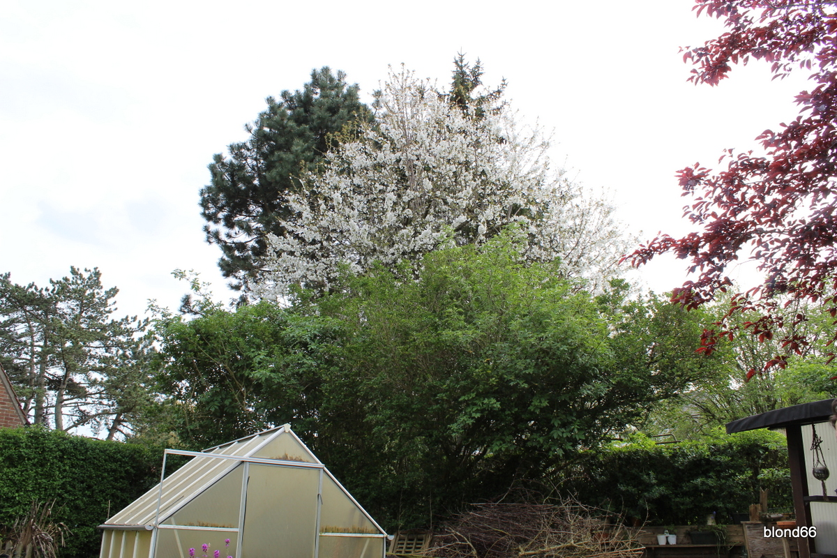 Et au milieu, le pommier en fleur apporte une touche de blanc rosé.