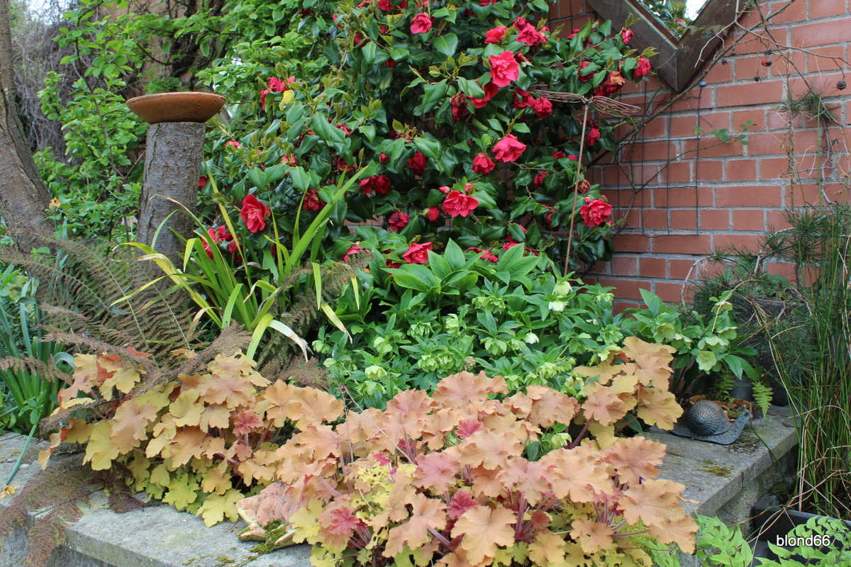 Le massif du Seringat est encore bien coloré avec les hellebores et le camelia.