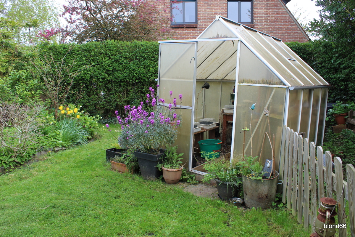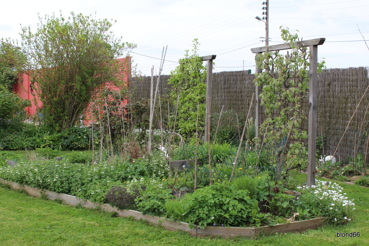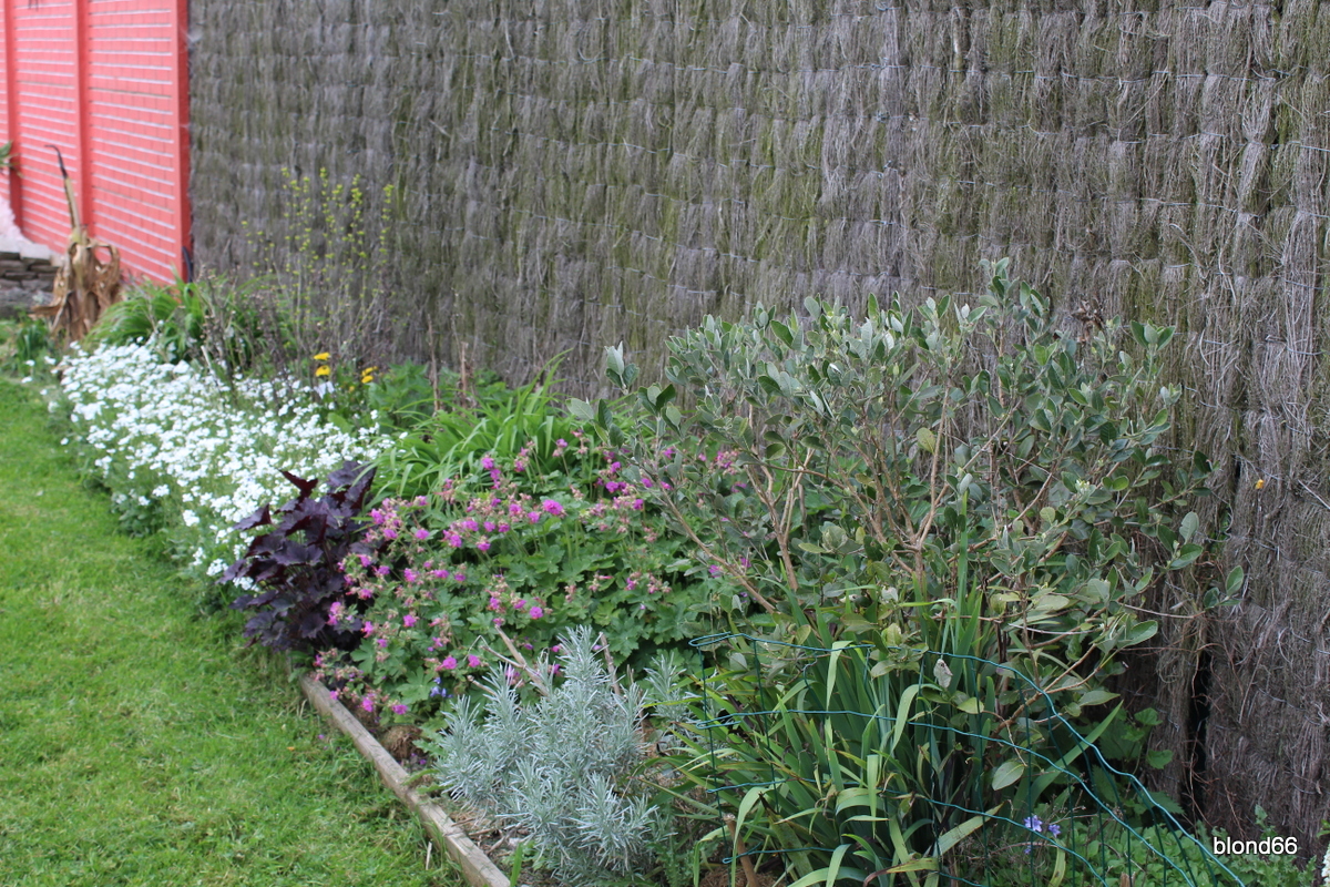 Et sur le coté, c’est bien coloré avec le geranium rose et l’aubriete blanche.