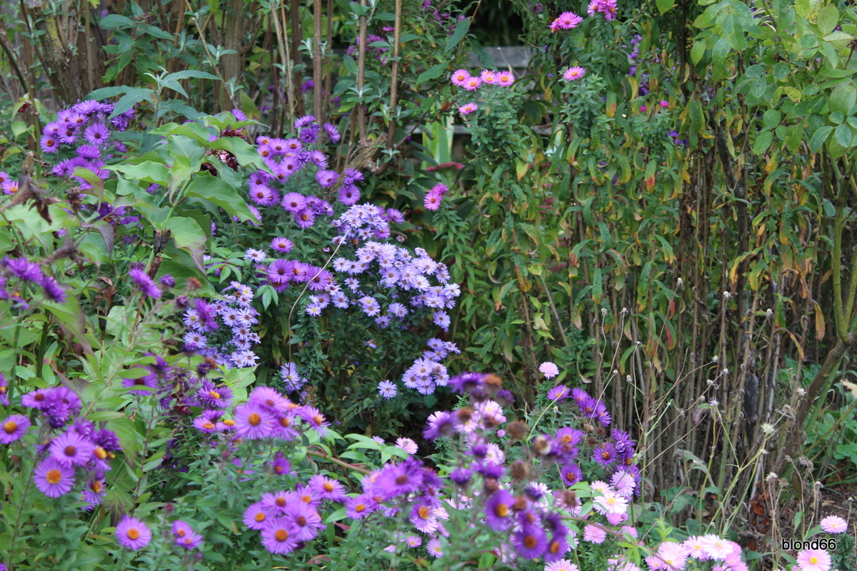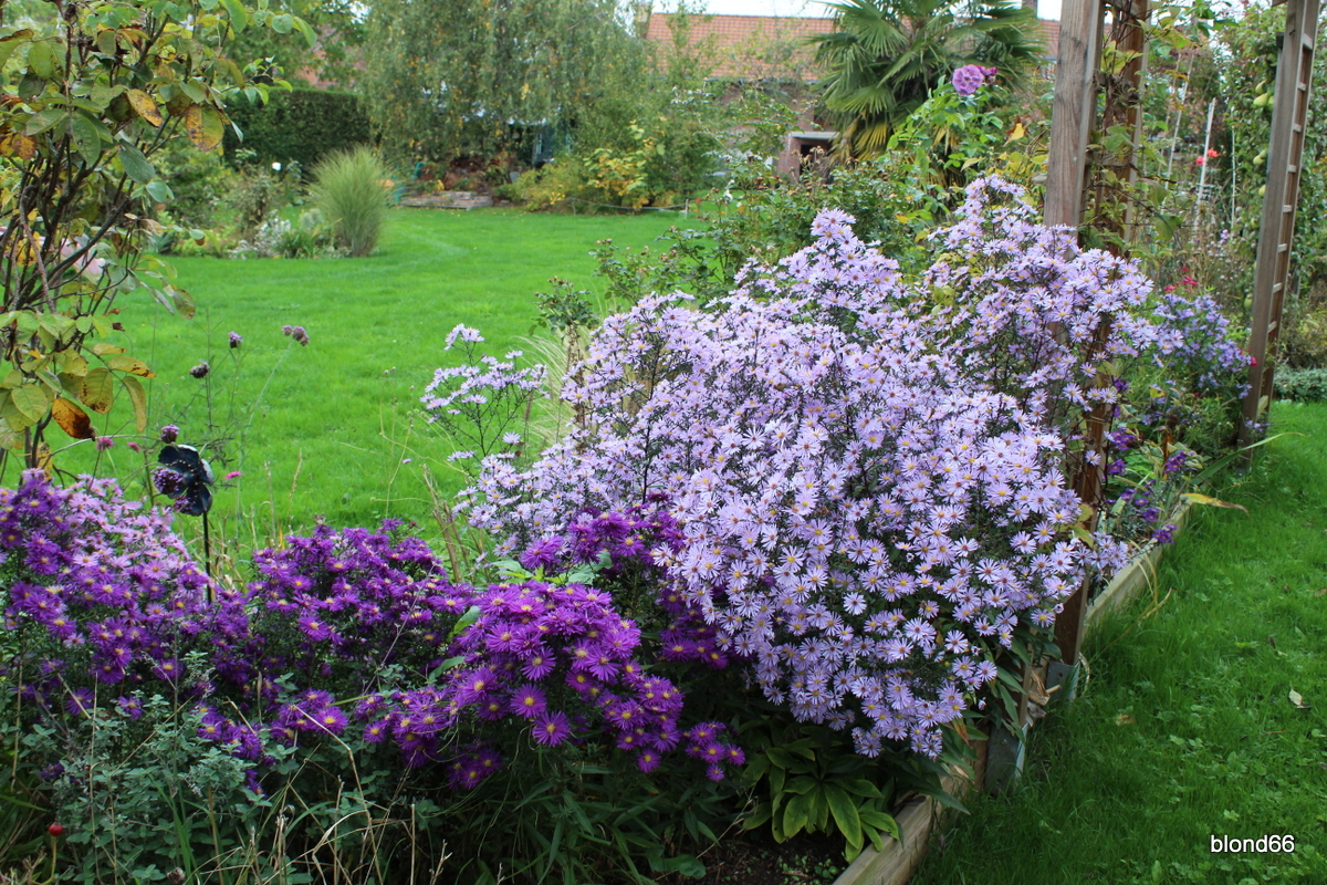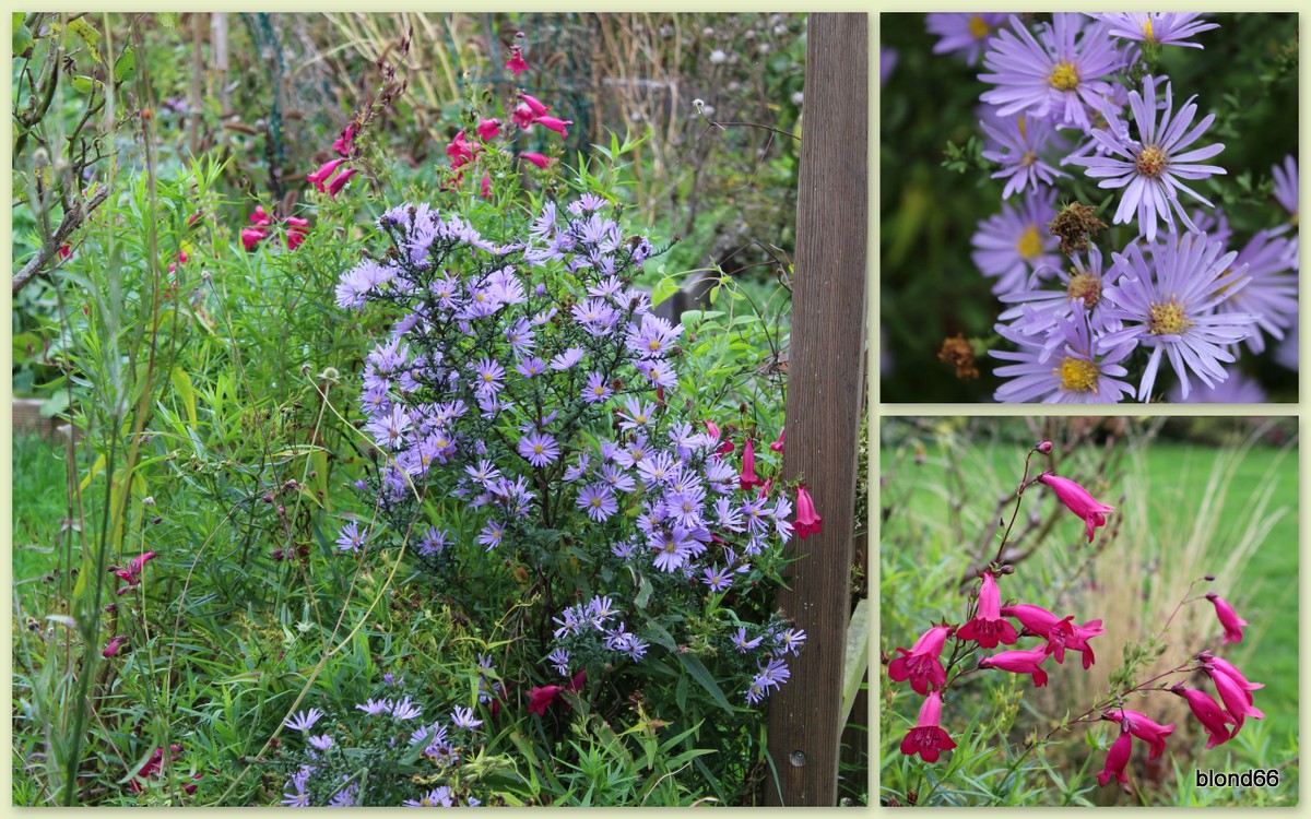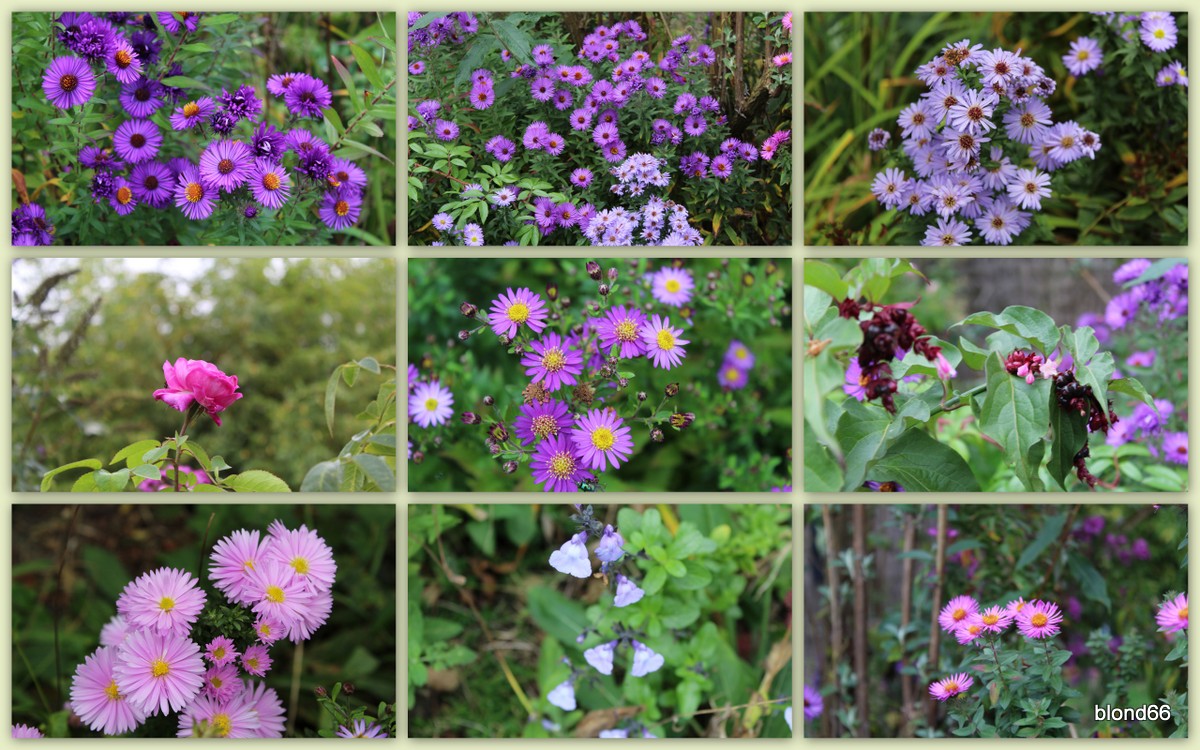 Alors même si le temps est gris, la promenade au jardin est bien colorée. les feuillages se colorent et les asters explosent.