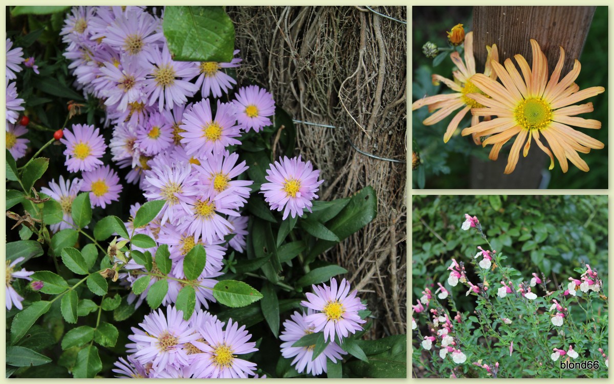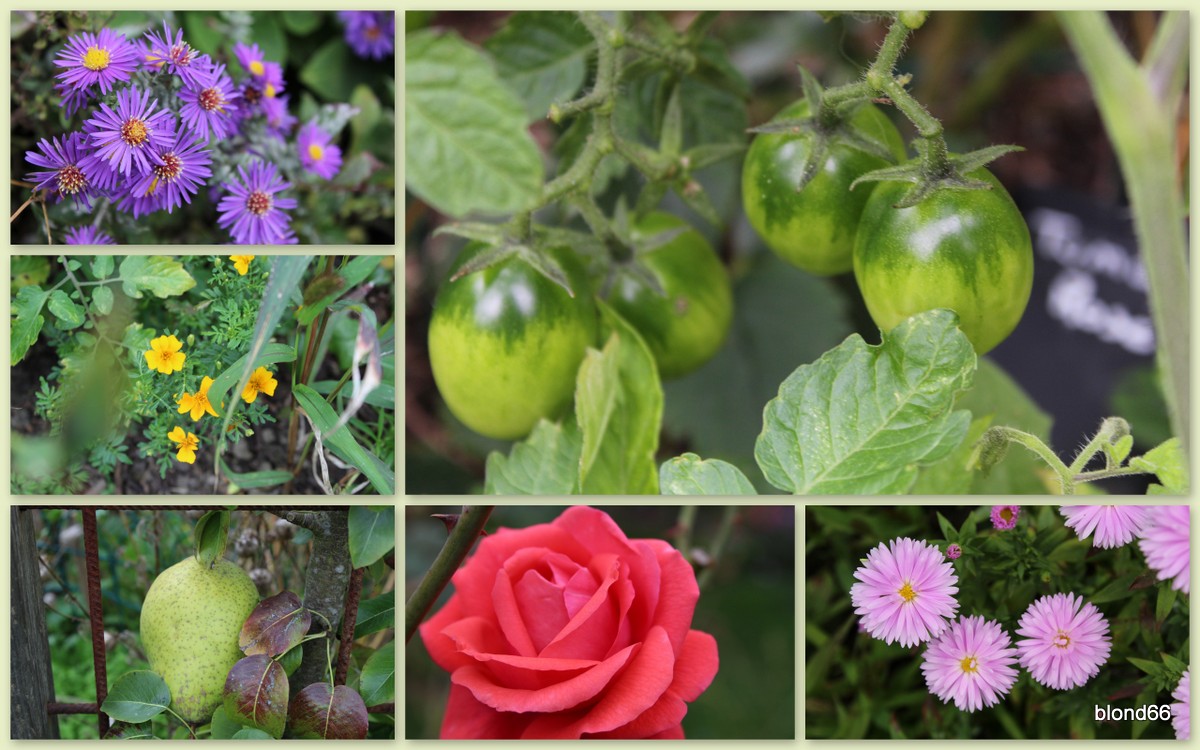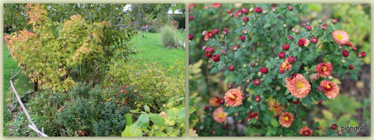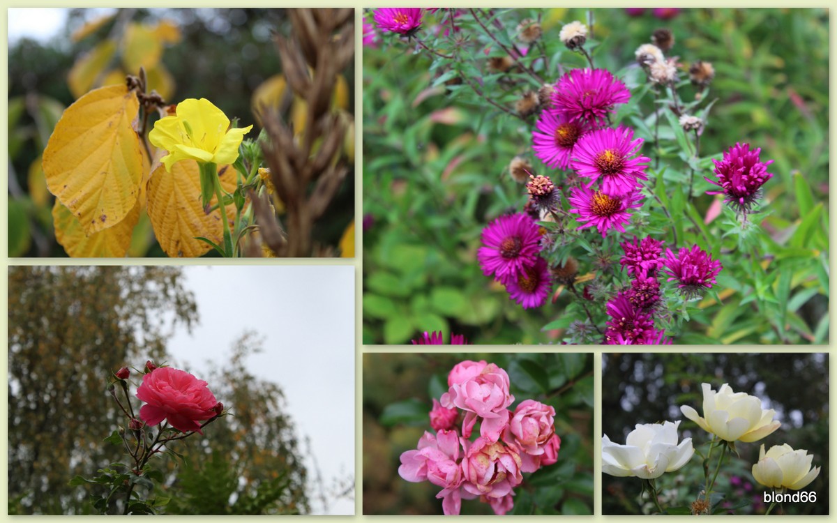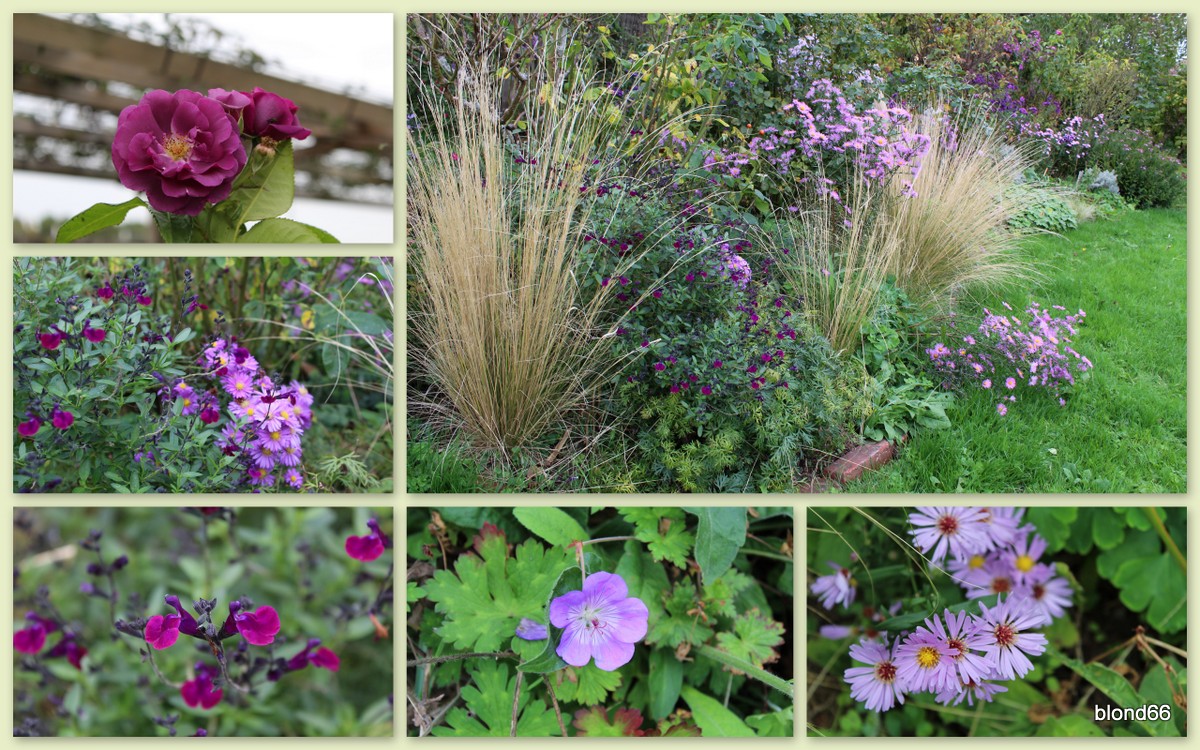 Alors même si le temps est gris, la promenade au jardin est bien colorée. les feuillages se colorent et les asters explosent.