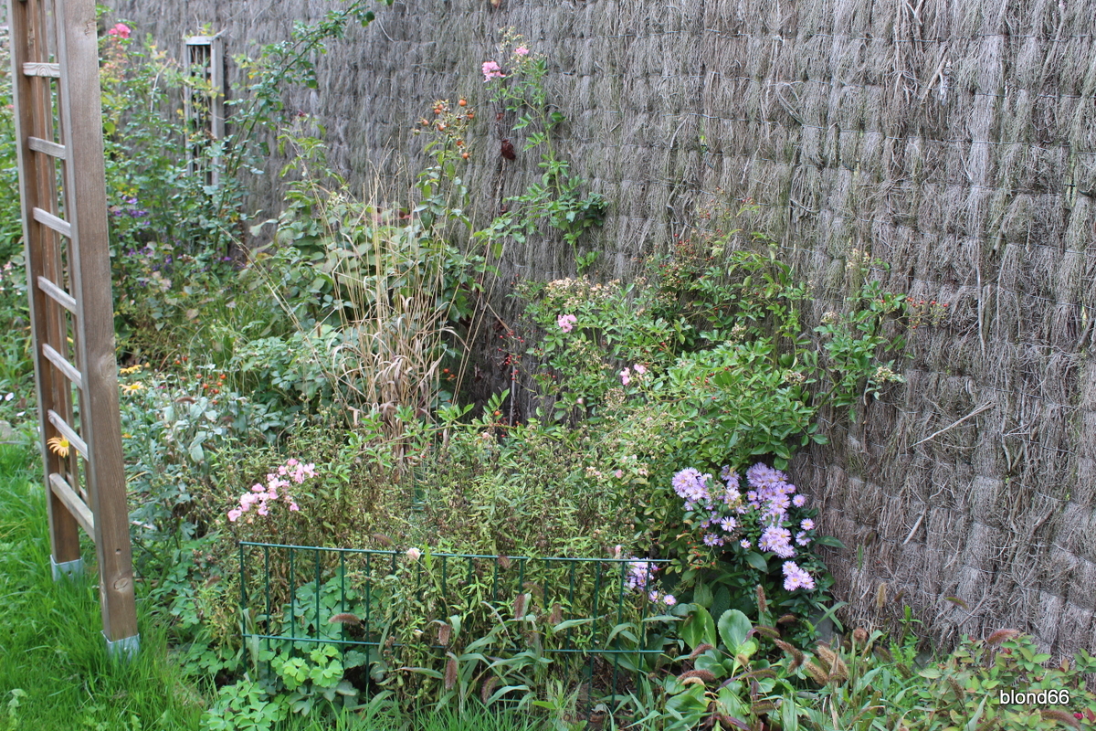Il reste quelques tiges du magnifique aster « Alma Potschke », installé en 2009. Il faut que je m’en occupe pour lui redonner une place digne de lui.