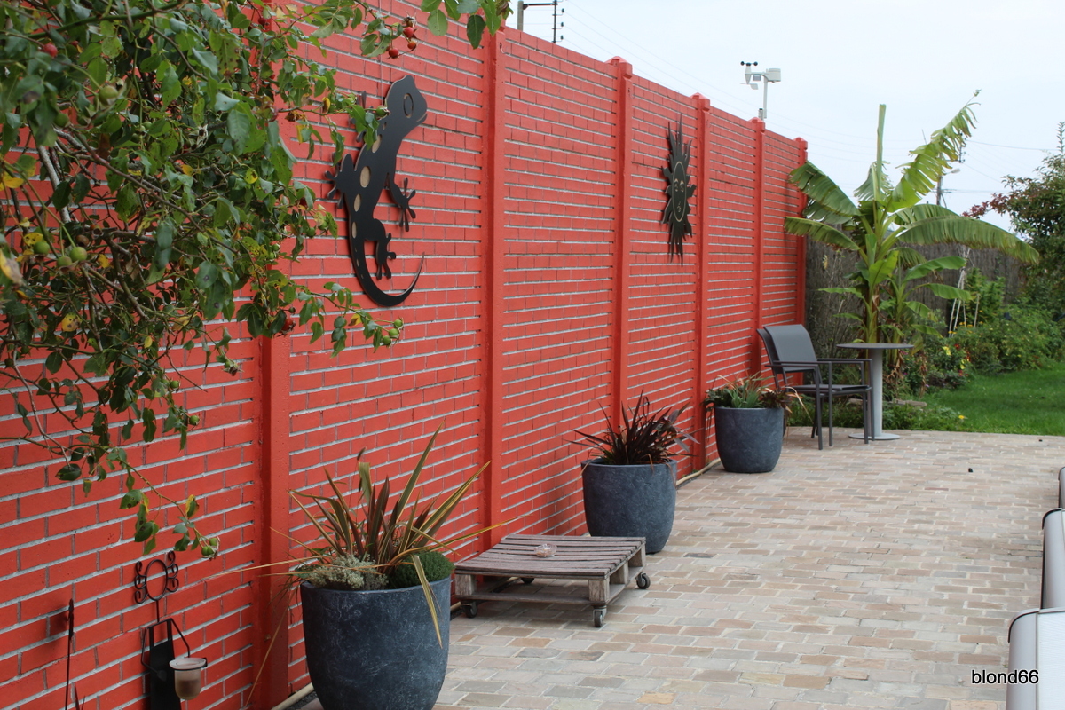 Un dernier regard sur mon mur rouge. C’est mieux avec les pots et la décoration.