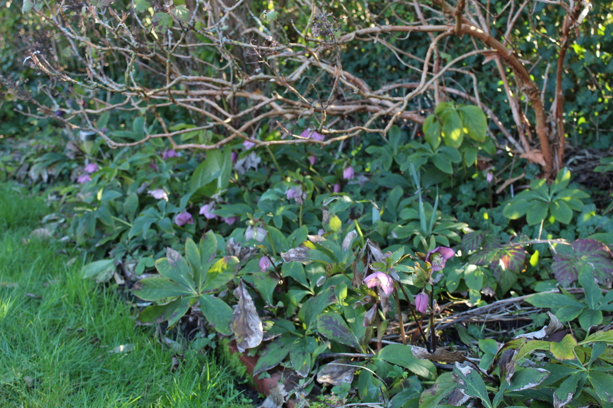 Au Sous-Bois, les hellebores se sont éparpillés, mais plutôt en rose.