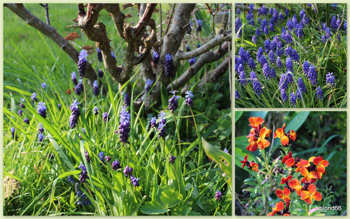 Mais il faut s’approcher un peu pour profiter des muscaris et des giroflées parfumées.