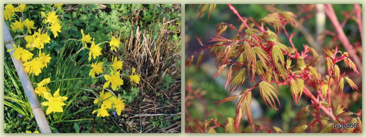 Je profite des petits Narcisses « Rip Van Winkle » et du jeune feuillage de l’acer « Sango-kaku ».