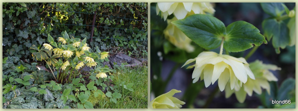 Pour commencer, un hellebore jaune double au feuillage jaune installé en 2020, un peu plus tardif que les autres.