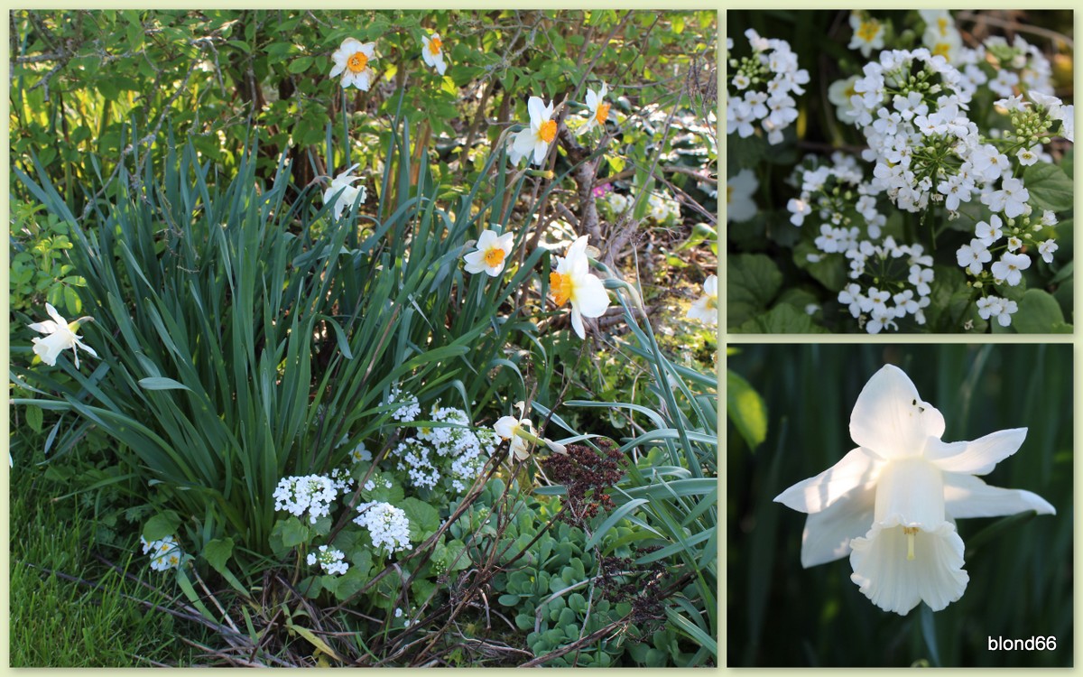De l’autre coté, des narcisses blancs accompagnés par la floraison du Pachyphragma macropylla.