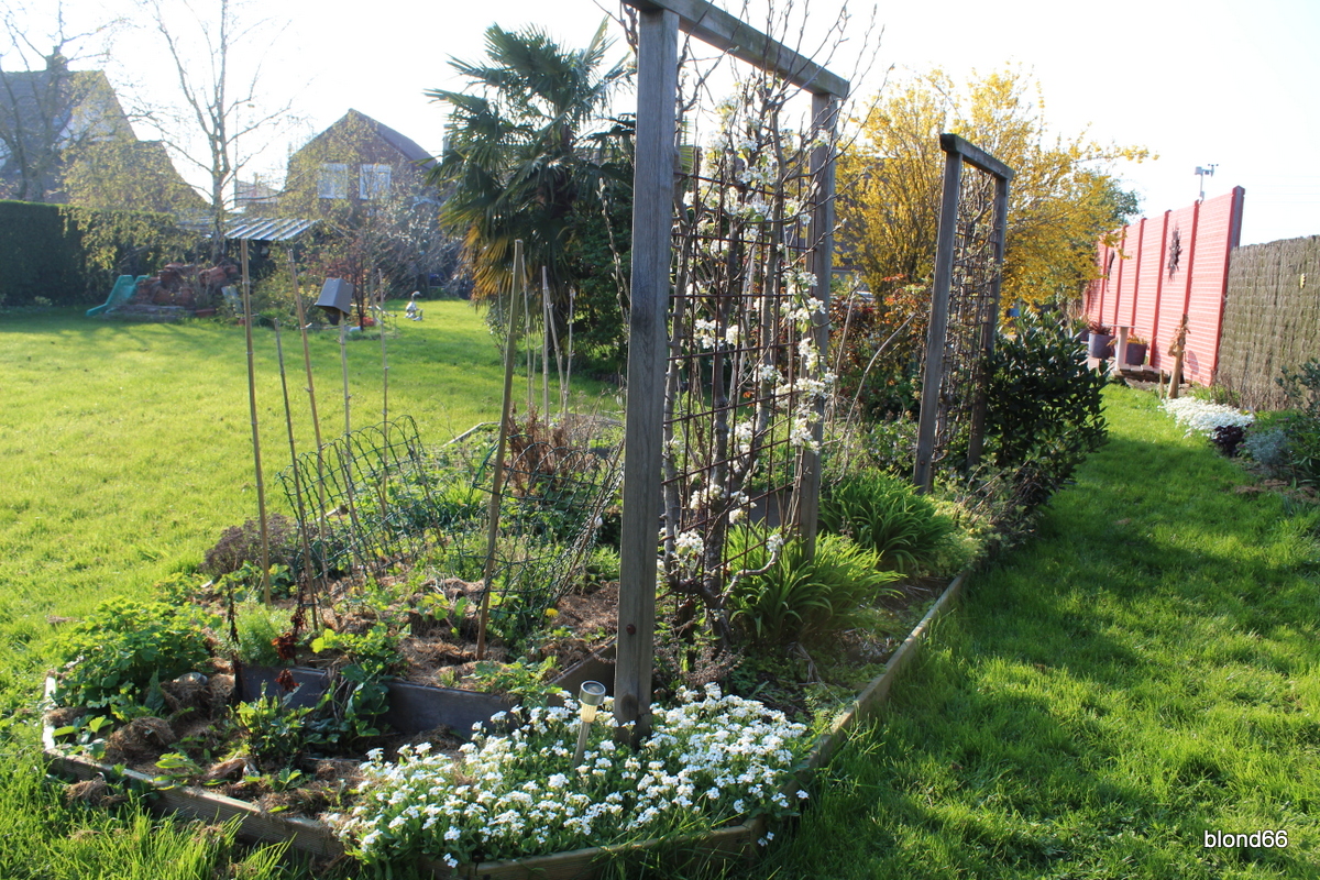 Du coté du potager, un des poiriers démarre sa floraison.