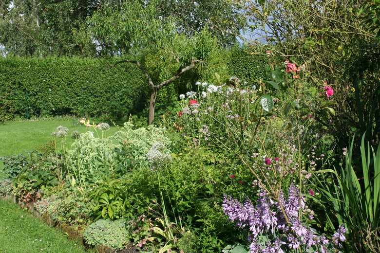 | autres fouillis de phlox, sedum et aconits au fond |