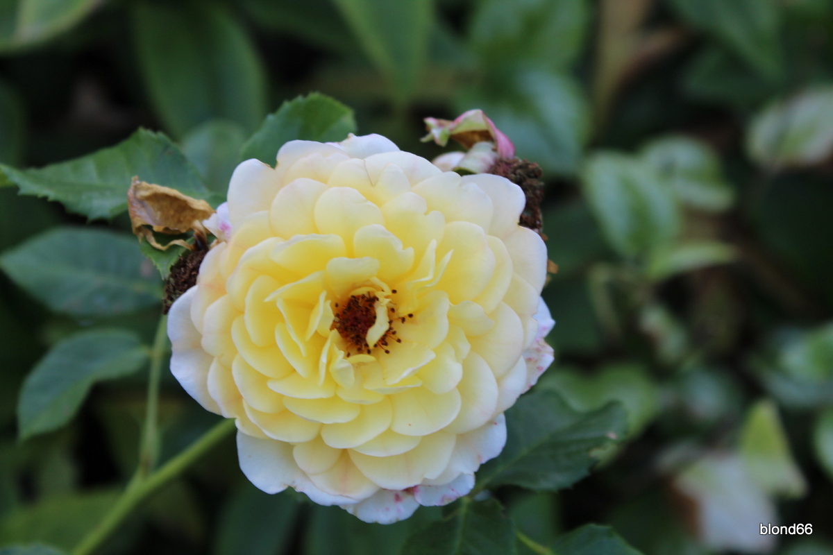 Scéne autour du rosier "Yann-Arthus Bertrand". |