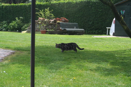 courage pour une partie de balle. Caline n'est pas adepte de ce jeux et le regarde courrir. |