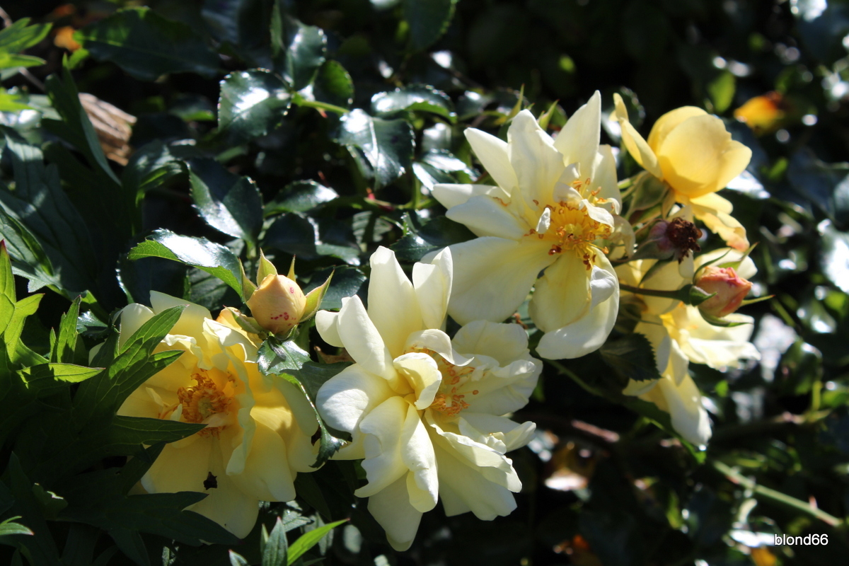 | Le rosier "Sunny rose" fleurit encore généreusement. | |